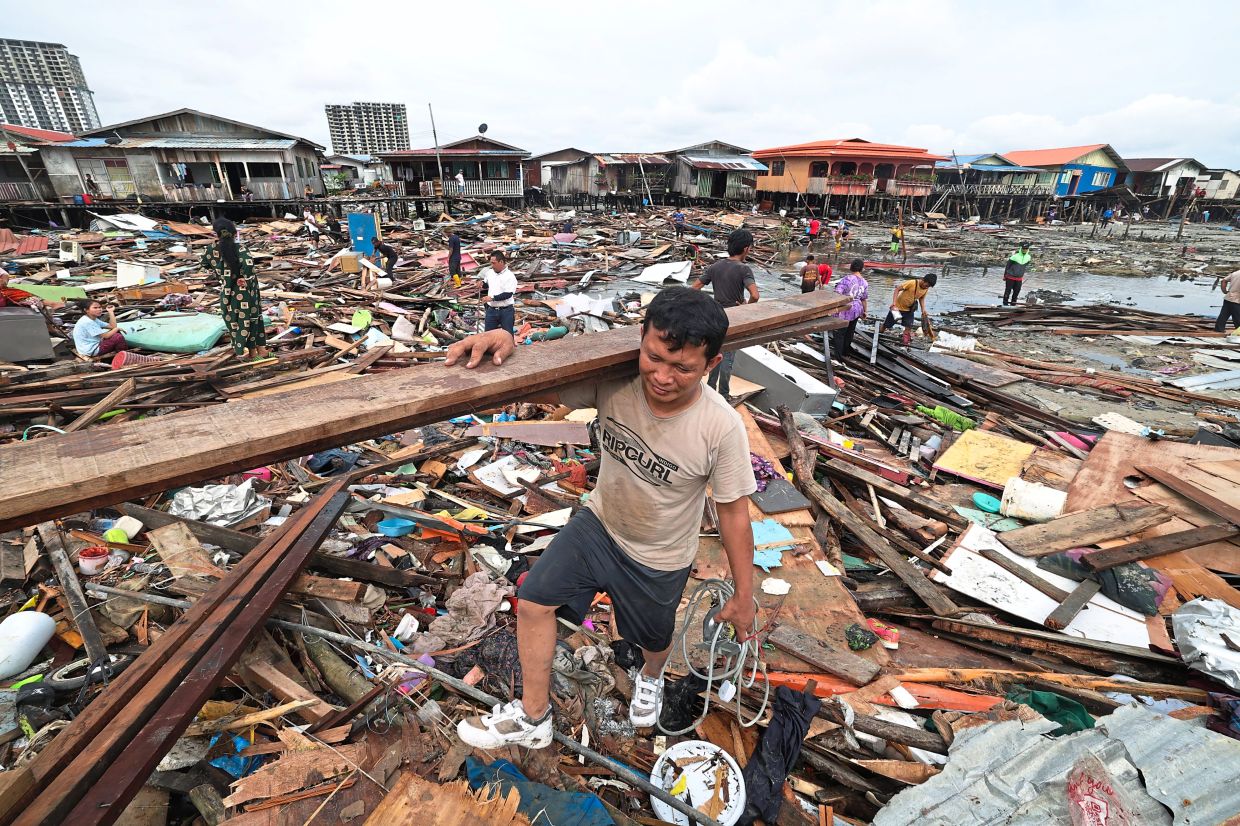 KOTA KINABALU: Another 38 stilt houses collapsed on Sunday night, taking the total to 108 houses destroyed, as the seaside water village of Kampung Forest faced the onslaught of the king tide phenomenon here.