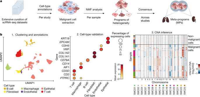 A study identifies 41 consensus gene expression meta-programs that are coordinately upregulated in subpopulations of malignant cells across tumour types, providing a comprehensive picture of hallmarks of intratumour heterogeneity.