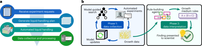 An artificial intelligence system called BacterAI uses laboratory robots to learn the logic of microbial metabolism. BacterAI plans experiments autonomously and does not require any prior knowledge.