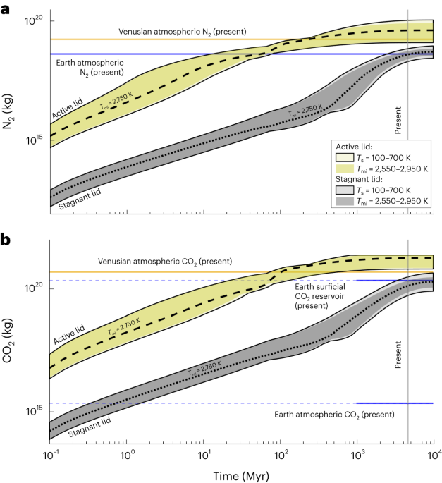 Venus’s atmosphere is linked to its interior and can be used to infer the planet’s evolution. Observed atmospheric N2, CO2 and surface pressures are best explained by an early phase of plate tectonics, operating for at least 1 billion years.