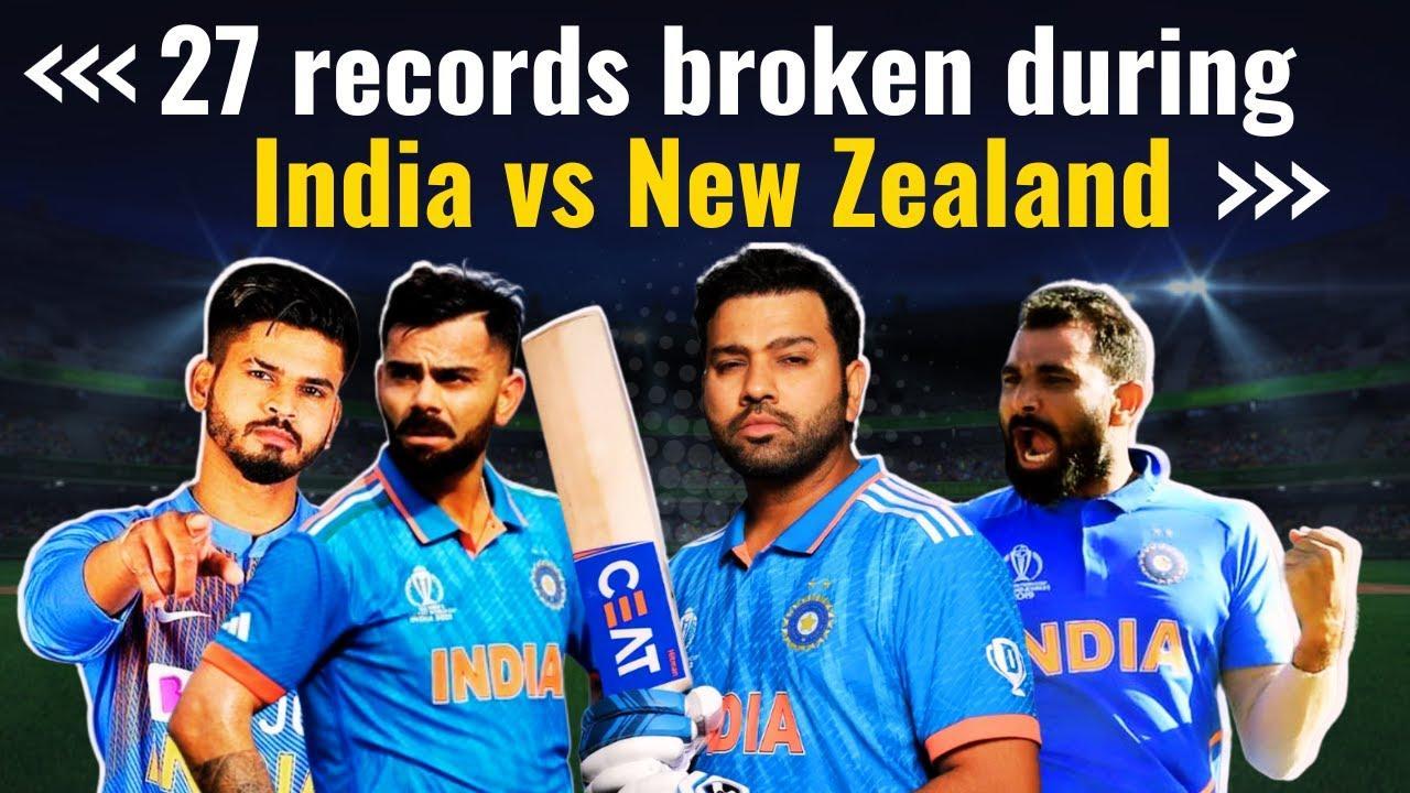 The India vs. New Zealand ODI World Cup clash witnessed an astonishing 27 record-breaking moments, showcasing the prowess of Virat Kohli, Mohammed Shami, Rohit Sharma, and Shreyas Iyer. Kohli's century marked his 50th ODI hundred, surpassing Sachin Tendulkar'…