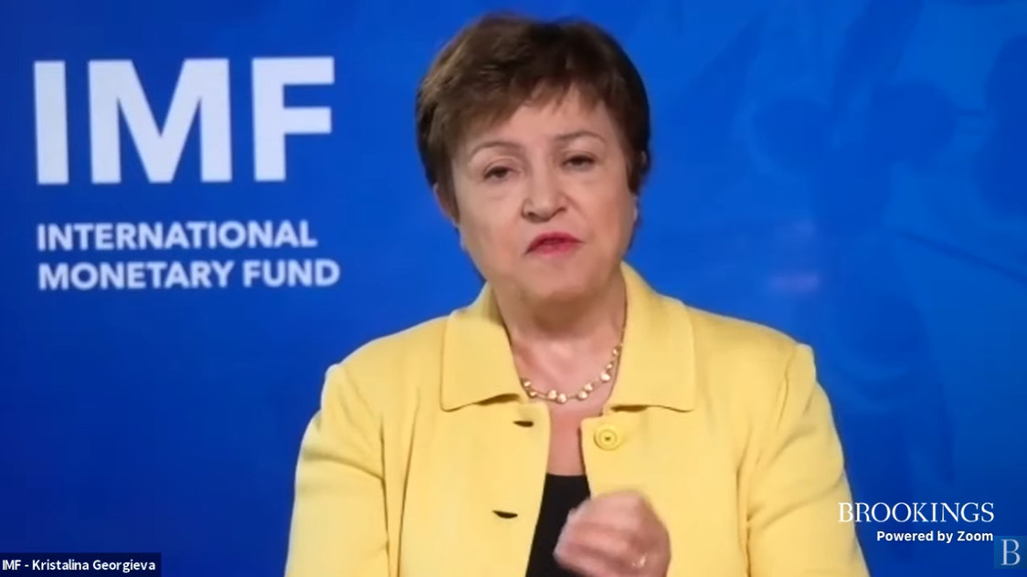 IMF Managing Director Kristalina Georgieva says an agreement to have a flexible global carbon price floor would help limit global warning to 1.5 to 2 degrees Celsius