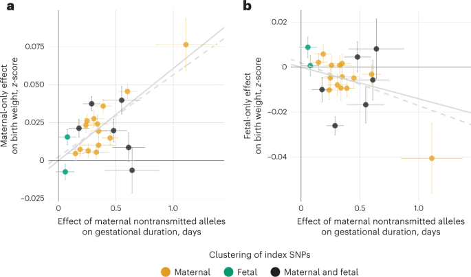 A GWAS meta-analysis, combined with tracing the parental transmitted and non-transmitted alleles in parent–offspring pairs, enabled us to distinguish the effects of maternal and fetal genomes on gestational duration and their links with birth weight. The iden…