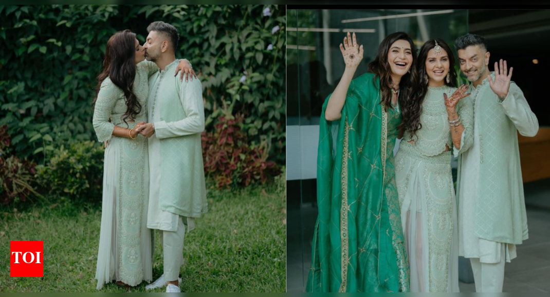 Dalljiet Kaur finally tied the knot with Nikhil Patel on Saturday. Actor Karishma Tanna has shared a few pictures of the newlyweds on Instagram. | Bollywood